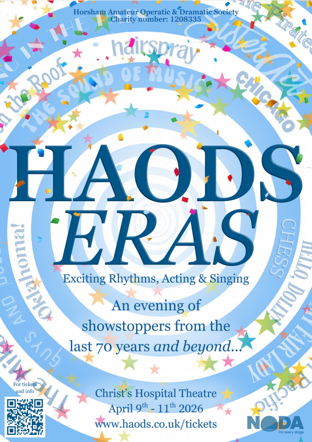 Come and join us in celebrating the last 70+ years of HAODS. With songs and drama from HAODS past and looking to the future. Featuring music from shows like Sister Act, Oklahoma, The Witches of Eastwick, Guys and Dolls, Sweet Charity, the works of Gilbert and Sullivan, Hairspray and many more.