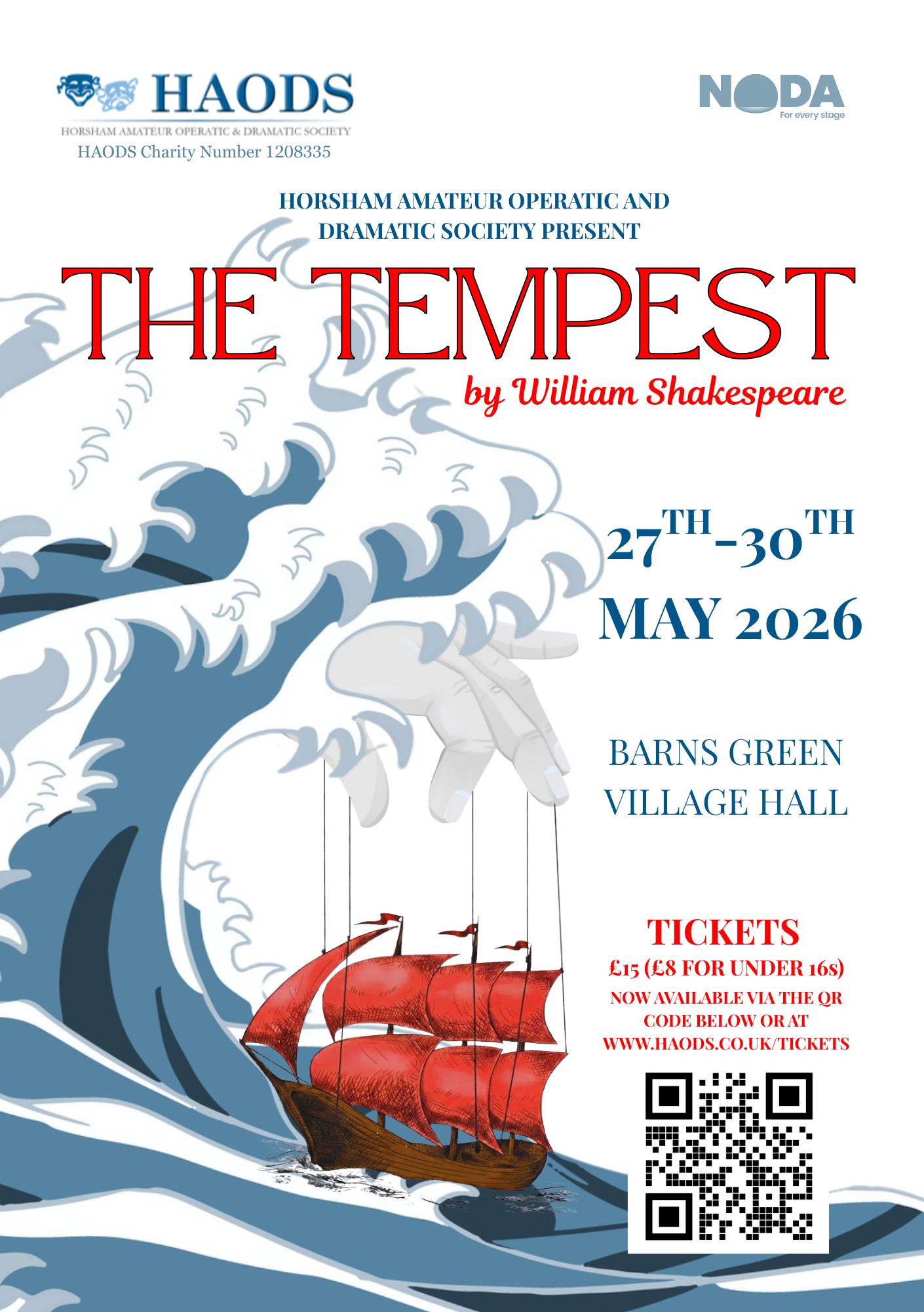 Our next show is ‘The Tempest’ by William Shakespeare, showing 27th – 30th May at Barns Green Village Hall. Click the poster to visit our box office.